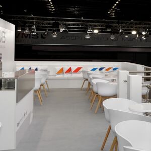 Die Gesamtfläche ist in einen Haupt- und Nebenstand gegliedert, wobei die Nebenfläche mit seinem ca. 150 m² großen Backstagebereich für die rund 100 Personen zählende Standbesatzung schon größer ist, als so mancher andere Stand auf der Messe.